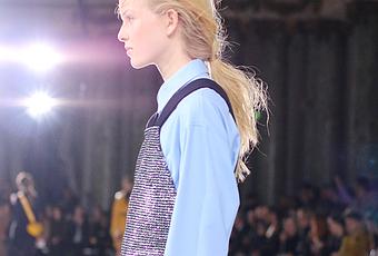 Quant à la mise en beauté, j’ai vraiment adoré cette fameuse queue de cheval hybride et nonchalante : le cheveu est texturisé, entortillé, et la coiffure est stoppée par un noeud aussi beau que complexe à reproduire, tout droit inspiré de l’univers marin. J’aime ce cheveu qui sent presque l’iode, et cette fille sauvage et naturelle.