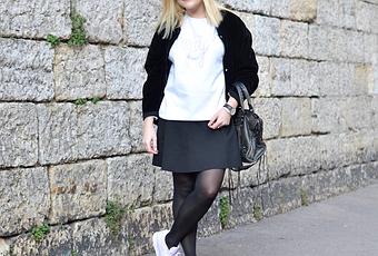 => Teddy Velours Noir Mango (similaire ici)=> Sweat Enjoy Phoenix Rad=> Jupe Noire Noisy May (similaire ici)=> Montre Daniel Wellington=> Sac City Classic Balenciaga=> Baskets Classic Leather Mauve Reebok