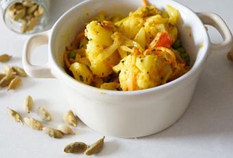 Curry de chou-fleur, carottes, tomates et petits pois