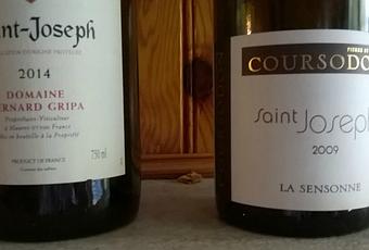 Nous avons ouvert deux bouteilles de l'appellation Saint-Joseph : un vin blanc et un vin rouge ( 100% Syrah) pour nous préparer à la dégustation de l'appellation Cornas qui fera l'objet de la séance à l'aveugle de notre club demain. La bouteille de Bernard Gripa ( blanc ) 2014 a été épaulée une bonne heure avant la dégustation. Le vin s'est très bien dégusté : très aromatique, élégant, sans sensation d'élevage marqué, et frais. Le plaisir était immédiatement au rendez-vous.