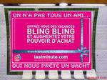 "On n'a pas tous un ami qui nous prête un yacht". Le slogan prévoyait de s'afficher dans les gares et dans le métro parisien, mais il a été censuré reporté...