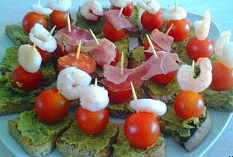 3- Sur un pique planté une tomate cerise et finir par une crevette ou du chorizo ou jambon cru.