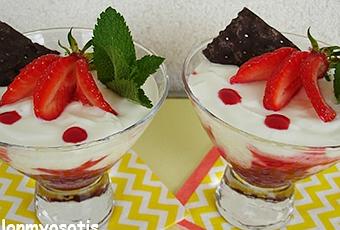 J'avais envie de fraicheur mais aussi de légèreté. Ce dessert respecte ainsi tous les critères. Il est parfait pour s'afficher en tant que produit laitier à la fin de votre repas et apporte à la fois une belle touche de gourmandise avec les fraises et le coulis sans oublier un soupçon de chocolat... Et puis c'est d'une simplicité :)