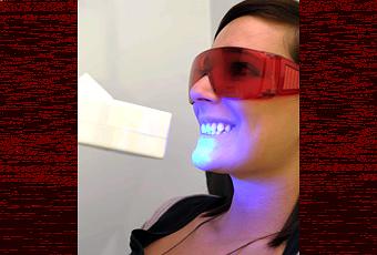 Après un (très) rapide examen de vos dents, on vous insère une gouttière dans la bouche, contenant un gel assez froid et désagréable au goût. Ce gel blanchissant sera activé par une lampe électroluminescente. Vous chaussez des lunettes noires et l’hôtesse braque la lampe sur votre bouche. Avec tout cet attirail, on n’a pas l’air très malin