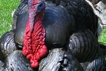 La couleur de la tête des dindons change souvent, variant du bleu-violacé au rouge.