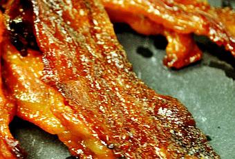 -Déposer les tranches de bacon sur la grille et enfourner pour 30 minutes. Le bacon doit être foncé mais pas brûlé. Reposer 5 minutes avant de manipuler car le sucre sera chaud et collant.