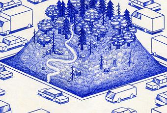 Des illustrations surréalistes qui nous plongent dans un univers ou paysages, objets du quotidien et poésie se mélangent.