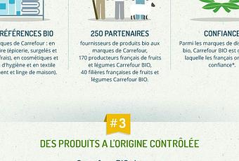 Le spot TV s’inscrit dans la série « Je suis l’optimisme », lancée au début de l’année, et montre des paysages bucoliques puis les produits de la gamme MDD bio de l’enseigne. La campagne, relayée en presse et sur le web, s’appuie sur une récente étude Nielsen qui place Carrefour comme premier distributeur généraliste en France pour les produits bio en France avec 5 600 points de vente. « Carrefour commercialise près de 5 000 références en bio dont 1 800 à ses marques : Carrefour Bio, Nectar of Nature (cosmétiques) ou TEX Bio (textile), en privilégiant les approvisionnements de proximité et les partenariats avec les PME », se félicite le groupe, qui précise vouloir encore développer sa gamme. Il se vante également d’avoir été pionnier avec le lancement de sa boule de pain bio en 1992 puis de sa première filière de fruits et légumes bio en 1998.