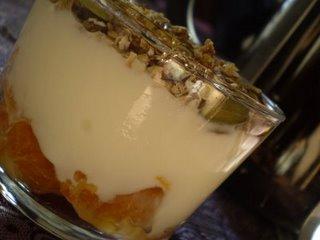 Je pense au petit jeu de Rosa qui nous invite à partager nos déjeuner/brunch habituels du wekend(ici!)…. Dernièrement je n’ai pas eu beaucoup de weekend à ma disposition et donc je n’ai pas encore pu partager avec vous mes petites habitudes dominicales….. Mais je me rattraperais la semaine prochaine ! Promis ! En attendant, je peux simplement partager avec vous mon petit déjeuneur habituel, non pas du dimanche, mais de tous les jours ! Pour moi le petit dej’ c’est vraiment le moment de la journée que j’apprécie le plus : c’est mon petit moment de la journée à moi, pour me faire plaisir, pour prendre mes forces, et surtout, surtout pour prendre mon temps ! La trilogie qui fait ma force : yaourt-fruits-granola ! Du granola maison il y en a toujours dans ma cuisine ! Je ne m’en lasse jamais, et Cristina (ma colloc) non plus !ET puis comme les verrines c’est IN, je m’y mets aussi !