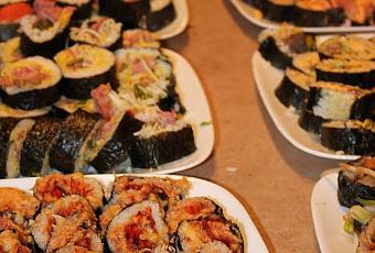 Sushis :2 feuilles de nori2 grosses balles de baseball de riz1 petit contenant de fromage à la crème régulier (ramolli) ou un contenant fouetté1 petit pot de jalapeños marinés3 petites tortillas aux jalapenos, coupées en dés et grillées au four a jusqu’à dorés et croustillants
