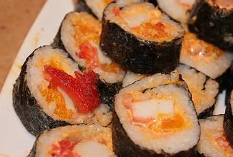 Sushis Goberge, mandarines et fraises, Mayo srirachaPour 2 rouleaux (environs 20 bouchées)