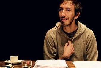 Le premier amour, celui qui ne s’est pas effacé, pas oublié et qui ressurgit au hasard d’une rencontre dans un café. C’est lui, qui ne vous reconnaît pas, et à qui vous voudriez dire combien cet amour est toujours présent, mais à qui vous demandez seulement : « un café, s’il-vous-plaît ». Letizia Russo a écrit un texte envoûtant dans lequel on s’enfonce comme on s’enfonce dans la mémoire qui nous déborde peu à peu et nous bouleverse soudain. Mathieu Montanier, assis comme pour une lecture, ne tournera pas les pages : il connaît ce texte, il en est habité. Chaque muscle de son visage, chaque mouvement de ses jambes, chaque geste d’une main ou du bras, tout est texte. Le garçon qui vient le servir, sont-ils morts, ses souvenirs ? Celui qui était un dieu pour lui, comme il était lui-même un dieu, avec qui il a appris, si toutefois on apprend dans l’amour. Ensemble ils sont devenus adultes, ont quitté l’enfance, ont goûté les mots et les peaux. Jusqu’au jour où l’interdit est tombé. Ce premier amour fut enfoui. Fallait-il revenir ? En revenant, cherchait-il quelque chose sans même le savoir, confusément ? Et l’autre, celui qui était un dieu, l’a-t-il vraiment oublié ? C’est impossible. C’est seulement parce que ses souvenirs sont morts. Alors, le jeune homme ne résistera pas à cette forme de folie qui s’appelle aussi l’amour, quand il est toujours le premier, le seul, celui qui mérite bien qu’on renverse des tables, qu’on brise des vitres, et tant pis si le monde, autour, impose sa loi, celle du commerce. « Les magasins sont-ils ouverts aujourd’hui ? » (Crédit photo : © Christophe Raynaud de Lage)