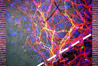 Source: Nature Communications 17 March 2016 doi:10.1038/ncomms10862 Generation and transplantation of reprogrammed human neurons in the brain using 3D microtopographic scaffolds (Visuel@Crédit: Neal K. Bennett, Moghe Laboratory, Rutgers Biomedical Engineering)