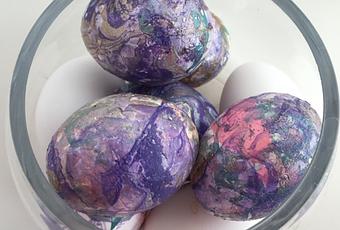 Chaque année, je cherche une nouvelle façon de décorer des œufs de Pâques. Cette année, j'ai repris l'idée de l'an dernier, en utilisant encore du vernis à ongles, mais essayant une nouvelle technique apprise lors de mon stage en enseignenent, il y a déjà très longtemps.