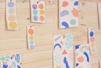 Pour nous faire patienter jusqu’à notre prochaine rencontre et parce qu’elle se doutait qu’on serait trop pressé, Sara nous avait préparé des petites plaques à peindre. Cette étape est particulière car les couleurs apposées sont comme bues par la terre et paraissent délavées, mates. A ce stade ce n’est pas facile de se rendre compte du rendu final, c’est à la cuisson que les engobes ou sous émaux dévoileront toutes leurs intensités. Une fois cuites, Sara passe les pièces dans un bain d’émail transparent pour leur donner un aspect brillant avant de lancer la deuxième et dernière cuisson.