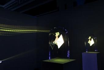 Invitation à la contemplation hypnotique et poétique, entre lumière artificielle et naturelle, « Ljós » nous renvoie à notre incapacité à maîtriser l’immatériel. Entités fragiles et mystérieuses, deux prismes lumineux évoluent dans un flux d’échanges constant et néanmoins cyclique, comme les saisons ou le passage des jours. L’énergie accumulée brûle, crépite et se matérialise sous la forme d’aurores boréales constamment renouvelées par la vidéo-projection (mapping), ici utilisée non pour produire des images, mais bien de la lumière.