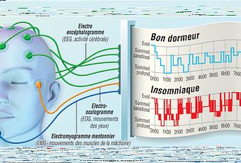 La polysomnographie est l'enregistrement complet du sommeil. Cet examen consiste à capter les rythmes électriques qui proviennent du corps pour en déduire les stades de sommeil.