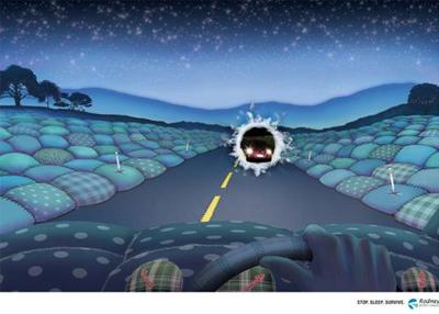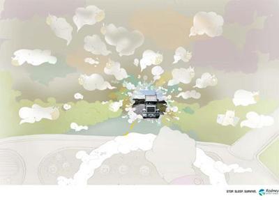Une campagne créative de la part d’une institution publique.... Le comté de Rodney en Nouvelle-Zélande l’a fait et pour un sujet loin d’être léger, la sécurité routière. Campagne onirique pouvant ressembler à certains de nos rêves... les affiches montrent que la route n’est pas un endroit idéal pour se laisser aller à s’assoupir et que le danger peut apparaitre très rapidement. “Stop sleep, survive”, signature de ces affiches, rappelle que toute l’attention des automobilistes est nécessaire pour faire face aux dangers de la route.