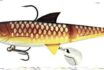 Il s'agit en fait d'un swimbait souple préarmé et déjà lesté en tête. Muni d'une large caudale et articulé au niveau de son tiers arrière, il est destiné à la recherche des brochets en grands lacs ou sur des parcours assez profonds.