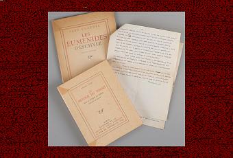 Joint du même auteur : Les Euménides d’Eschyle. Paris, NRF, 1920. In-8, broché. Édition originale numérotée.GIDE (André). Le retour du Tchad. Paris, NRF, 1928. In-8, broché. Édition originale. Un des 110 ex. destinés aux bibliophiles de la NRF.