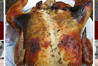Préchauffer le four à 180°C/350°F. Laver l'intérieur et l'extérieur du poulet sous l'eau froide et essuyer. Déposer le poulet sur grille dans un plat allant au four, réserver. Dans un bol, mélanger les ingrédients à l'exception du beurre.