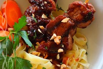 3)Au moment de servir, parsemer les brochettes des arachides (moi, noix de cajou).