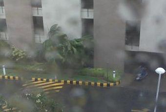 Et bien, il y a quelques minutes, le ciel s’est couvert de nuages d’encre, le vent a commencé à souffler comme il y a neuf ans en France. Cinq minutes plus tard, et ce sont des litres d’eau en bataille qui viennent flageller les branches de palmiers et les passants imprudents.