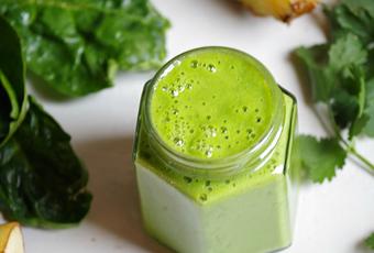 ~ La coriandre est spécifique pour capter les métaux lourds présents dans l'intestin et éviter qu'ils ne rejoignent la circulation sanguine. Elle est plutôt forte en goût. Si vous n'appréciez pas sa saveur ajouter 1 cc de chlorella, micro-algue verte qui détient la même spécifité.