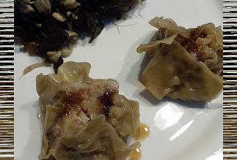 Sauce au vinaigre noir : 4 cs de sauce soja, 2 cs de vinaigre de riz noir, 10 g de gingembre frais émincé, 1 cc de sucre