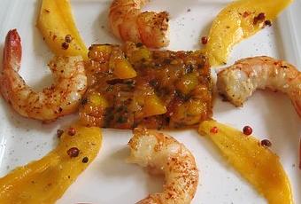 technorati tags: crevette mangue chutney tomate vinaigre Xérès piment d'Espelette poivre rose entrée recette mamina