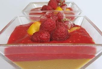 DESSERT FRUITE AUX PÊCHES ET AUX FRAMBOISES
