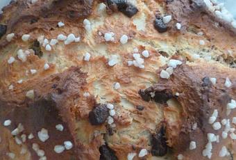 Inciser la brioche en croix, la dorer au lait puis la parsemer de sucre perlé.