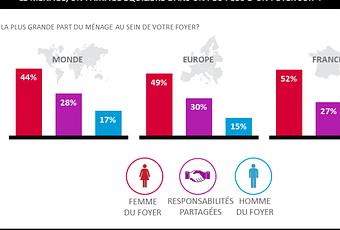 Le paneliste Nielsen vient de publier une étude sur le partage et la répartition des taches ménagères au sein des familles à travers le monde. Il en ressort qu’aujourd’hui 44% des interrogés déclarent que c’est une femme chef de famille qui fait la majorité du ménage, 17% un homme, et pour 28% qu’il s’agit une charge partagée entre les deux chefs de famille.