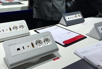 Aujourd’hui les mobiliers de conférence ou de bureau doivent pouvoir s’intégrer automatiquement au réseau ou aux interfaces multimédia afin d’exploiter au mieux les sources numériques.