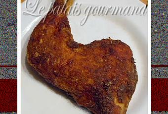 Mélanger tous les ingrédients dans un ziploc et y ajouter les hauts de cuisses. Bien mélanger pour enrober le poulet. Préchauffer le four à 400F ou le BBQ. Au four, déposer les morceaux de poulet sur une grille huilée et déposer celle-ci sur une plaque. Pour le BBQ, huilé les grilles du BBQ pour éviter que le poulet colle. Cuire environ 15 minutes. Vérifier avec la pointe d'un couteau le bout le plus épais pour être bien certain de la cuisson. **J'ai fais cuire à 375° sur la grille du centre environ 1 heure pour mes cuisses de poulet.**