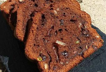 Une recette adaptée du cake au chocolat et au gingembre confit de Pierre Hermé (Larousse du Chocolat). N'étant pas fan du gingembre confit, je l'ai simplement remplacé par un mélange de fruits secs : noix, noix de pécan et pistaches.