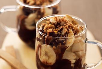 Couvrir du mélange et mettre quelques tranches de bananes en décoration.
