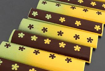 La déco est faite au pochoir avec du beurre de cacao coloré.