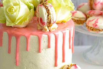 J’ai donc opté pour une crème blanche et un coulis rose. Pour la déco j’ai décidée de faire des macarons bicolores dont la recette arrive prochainement. Je me suis inspirée des [ Meringues kisses ] pour les faire.