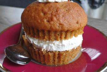 Décorez le dessus de chaque muffins avec de la crème et des petits copeaux de chocolat.