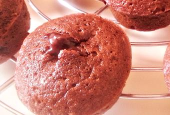 Laissez refroidir 2 minutes dans les moules, pas plus pour éviter que la chaleur résiduelle ne permette au chocolat de continuer à cuire, et démoulez sur une grille. Mangez les choco-tendresses lorsqu’ils sont complètement refroidis.