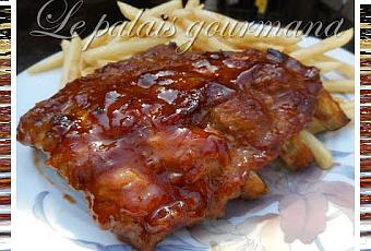Préparez la sauce BBQ. Dans une casserole, à feu vif, portez à ébullition tous les ingrédients. Réduisez le feu à doux et laissez mijoter jusqu'à ce que la sauce épaississe. Réservez jusqu'au moment de cuire les côtes levées. Badigeonnez les côtes levées de sauce et faites griller à feu moyen-vif de 8 à 10 minutes dans une poêle striée ou sur le gril à feu moyennement élevé. Badigeonnez régulièrement la viande en cours de cuisson.