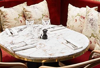 Le restaurant l’Alcazar fonctionne sous l’idée d’une grande maison familiale avec une élégance absolue. On a des éléments qui font appel au raffinement sans faille de l’artisanat tels que le marbre, le laiton, le terrazzo, la paille et le bois. On en a également d’autres qui viennent s’associer à ceux-ci comme le laqué, le ciré, l’encaustiqué, le brut et le sauvage.