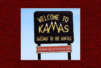 De plus, il existe a un petit hameau à deux ou trois kilomètres plus à l'Est qui s’appelle « Samak », ce qui veut juste dire « Kamas » écrit à l'envers ; c'est donc à partir de ce jeu de mots tordu, que je me suis aussi tortillé l'esprit pour réaliser qu’après tout, Kamas n’était pas si éloigné du fameux kamasutra, et voilà pourquoi je n'ai pu m’empêcher de mentionner la liaison tout à fictive entre ce lieu mormon des plus conservatifs et le kamasutra, sur le panneau rustique qui accueille les visiteurs ...