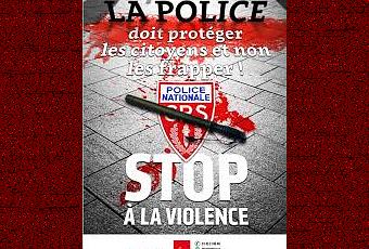 Une matraque et un insigne de CRS, près d’une flaque de sang, titrés: «La police doit protéger les citoyens et non les frapper.» Cela justifie-t-il autant de haine de classe?