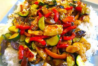 laissez-les dorer, puis ajoutez dessus les courgettes les aubergines et les poivrons