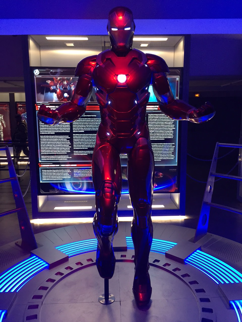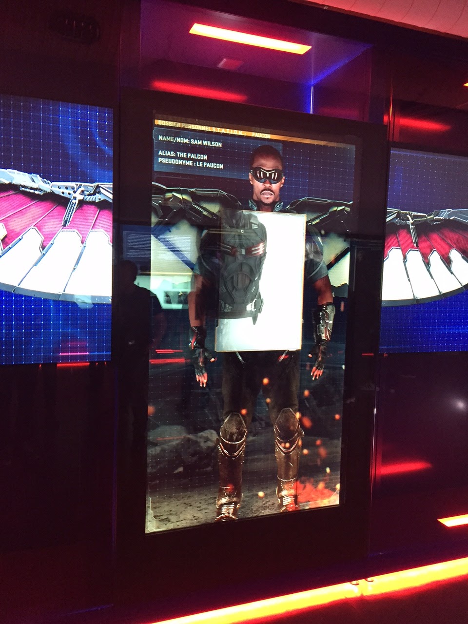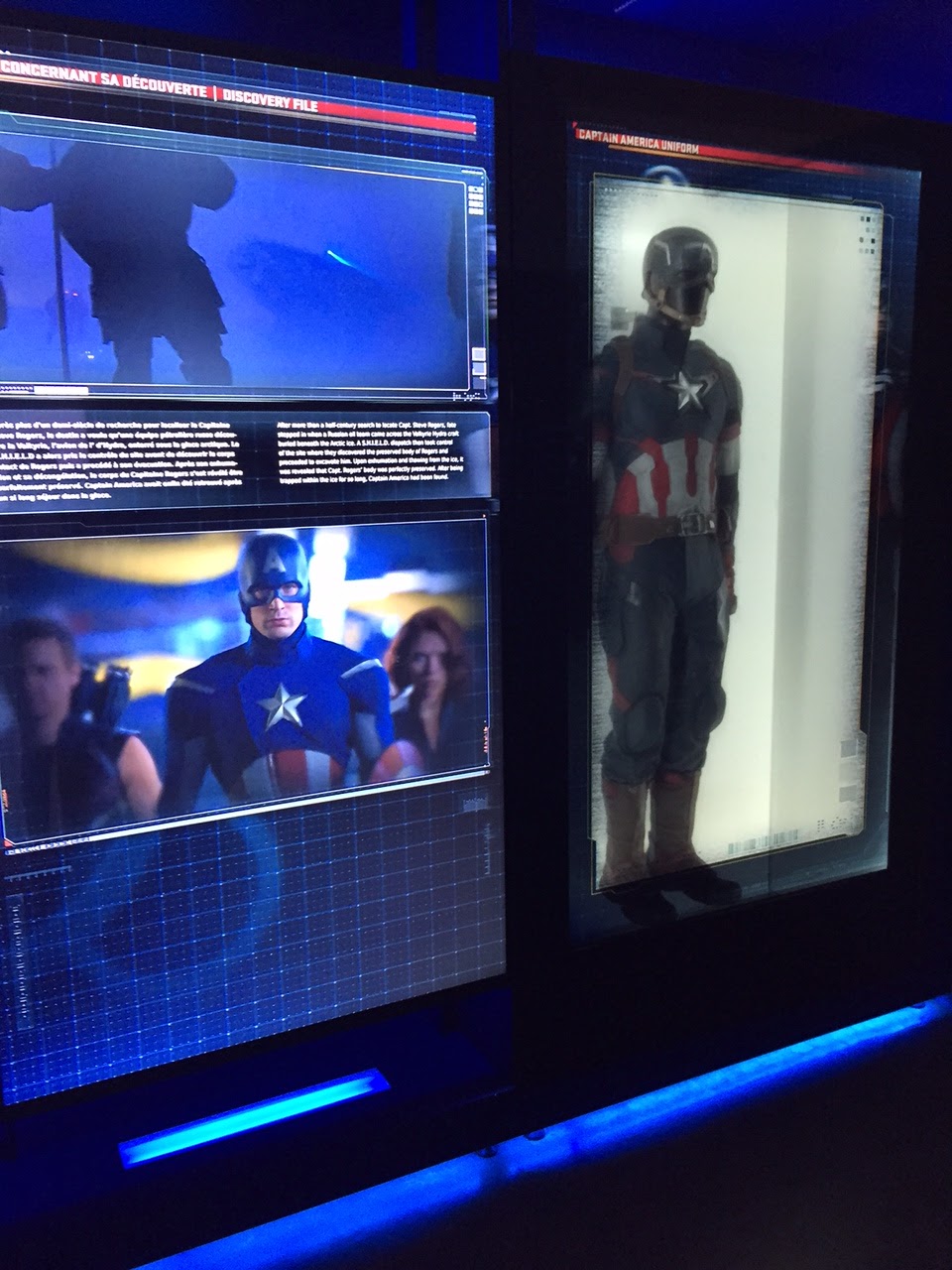 Vous passerez ensuite dans les pièces consacrées à Black Widow, Hawkeye, scarlet witch, vision, falcon…dont les origines, les accessoires n’auront plus aucun secret pour vous. Les écrans qui alternent hologrammes et costumes valent le coup d’œil.