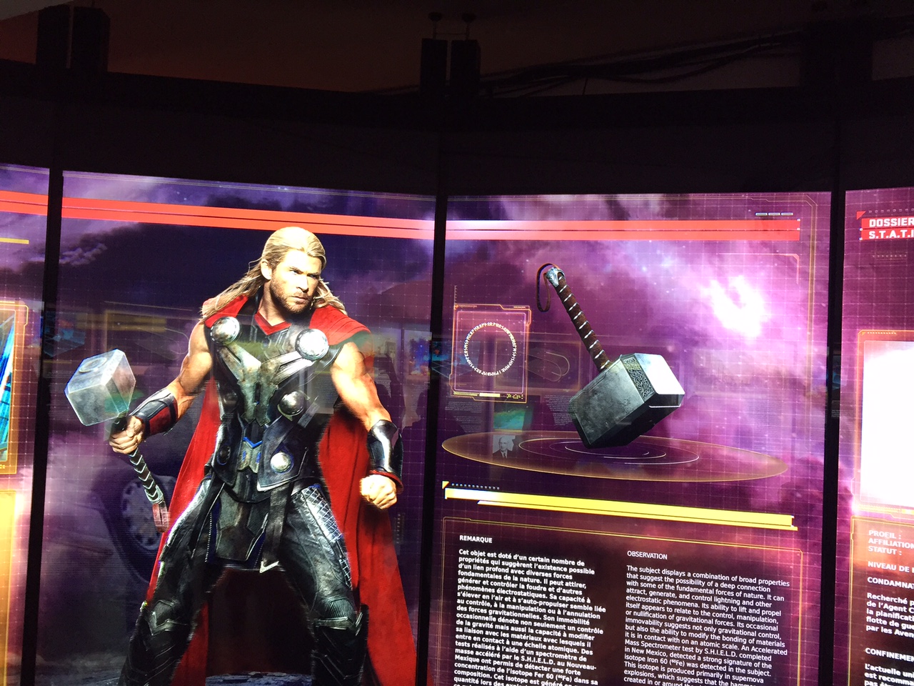 Sans oublier un petit détour par la salle de confinement pour observer les méchants (leurs vaisseaux, un chitauri conservé de la bataille de New York). Puis vient ensuite le monde étoilé de Thor et sa cité Asgardienne, sans doute un peu plus compliquée pour les plus petits, il faut dire que le système d’exoplanètes a de quoi rendre marteau.