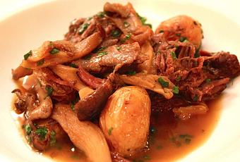 Dans un autre genre, la Joue de bœuf fondante à la fève de Tonka est accompagnée de pommes vapeurs et de champignons bien immergés dans la sauce, certes un peu légère, mais la viande est en effet fondante, alors…