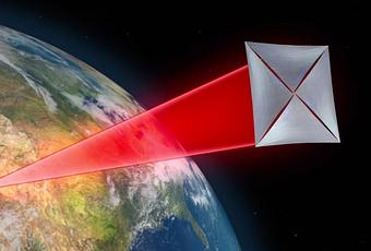 Puisqu’une voile solaire est propulsée par la force de la lumière qui la frappe, on tentera de doper celle-ci en la bombardant avec une convergence de rayons laser d’une puissance totale de l’ordre de 100 milliards de watts. Imaginez le gros canon de l’Étoile de la Mort, mais pointée sur une sorte de miroir ultra mince plutôt que sur le chalet de la Princesse Leia, et allumés pendant des semaines, des mois ou des années plutôt que pendant quelques secondes pour transférer le plus d’énergie possible à la voile.
